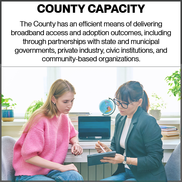Clark County will accomplish this vision through three goal areas: Broadband Access, Digital Skills and Adoption, and County Capacity.
