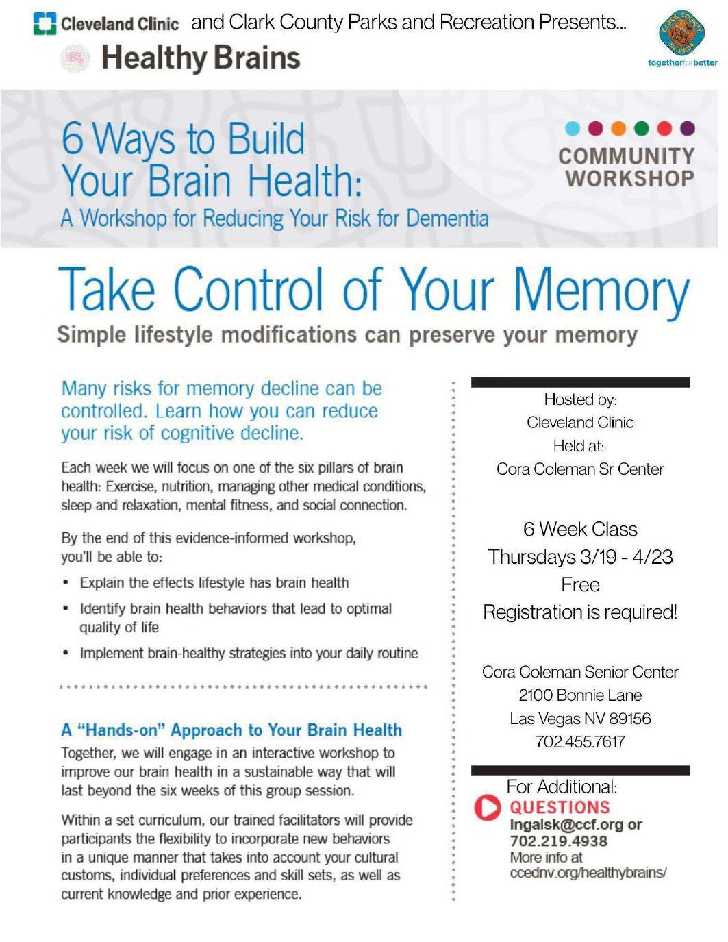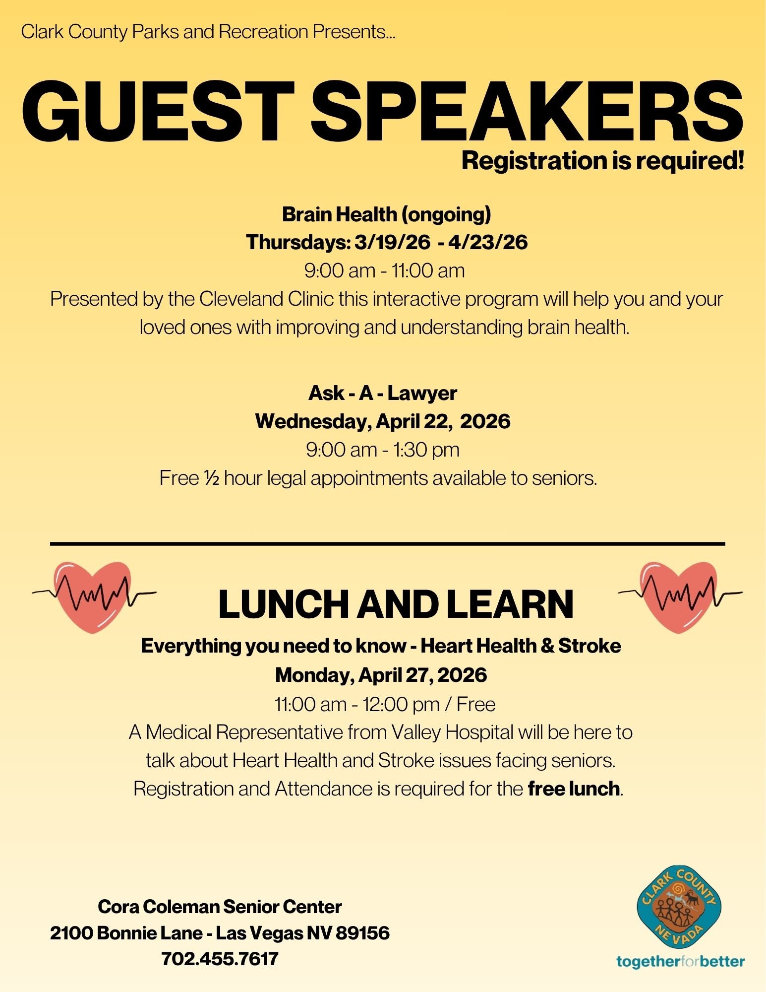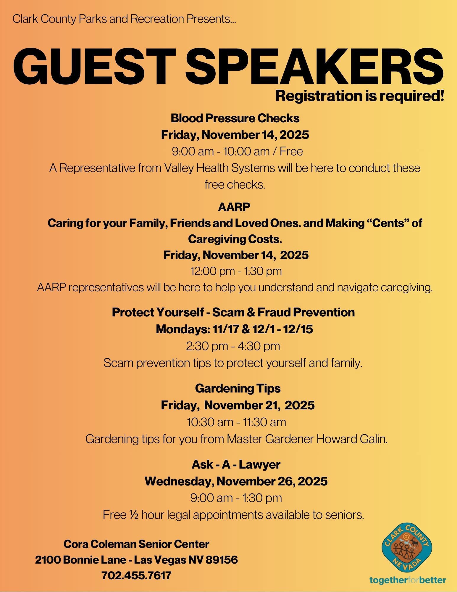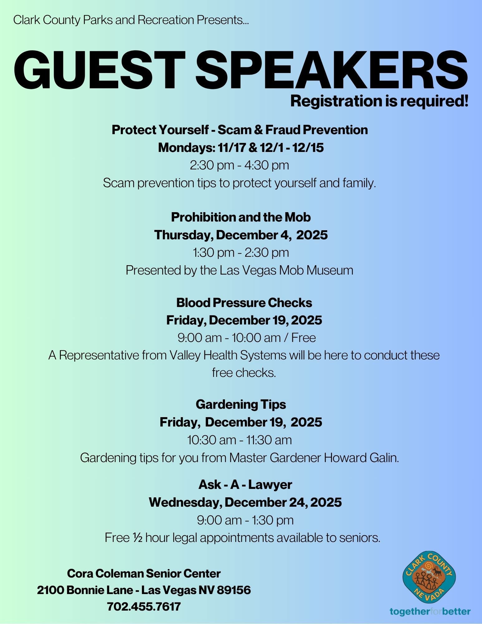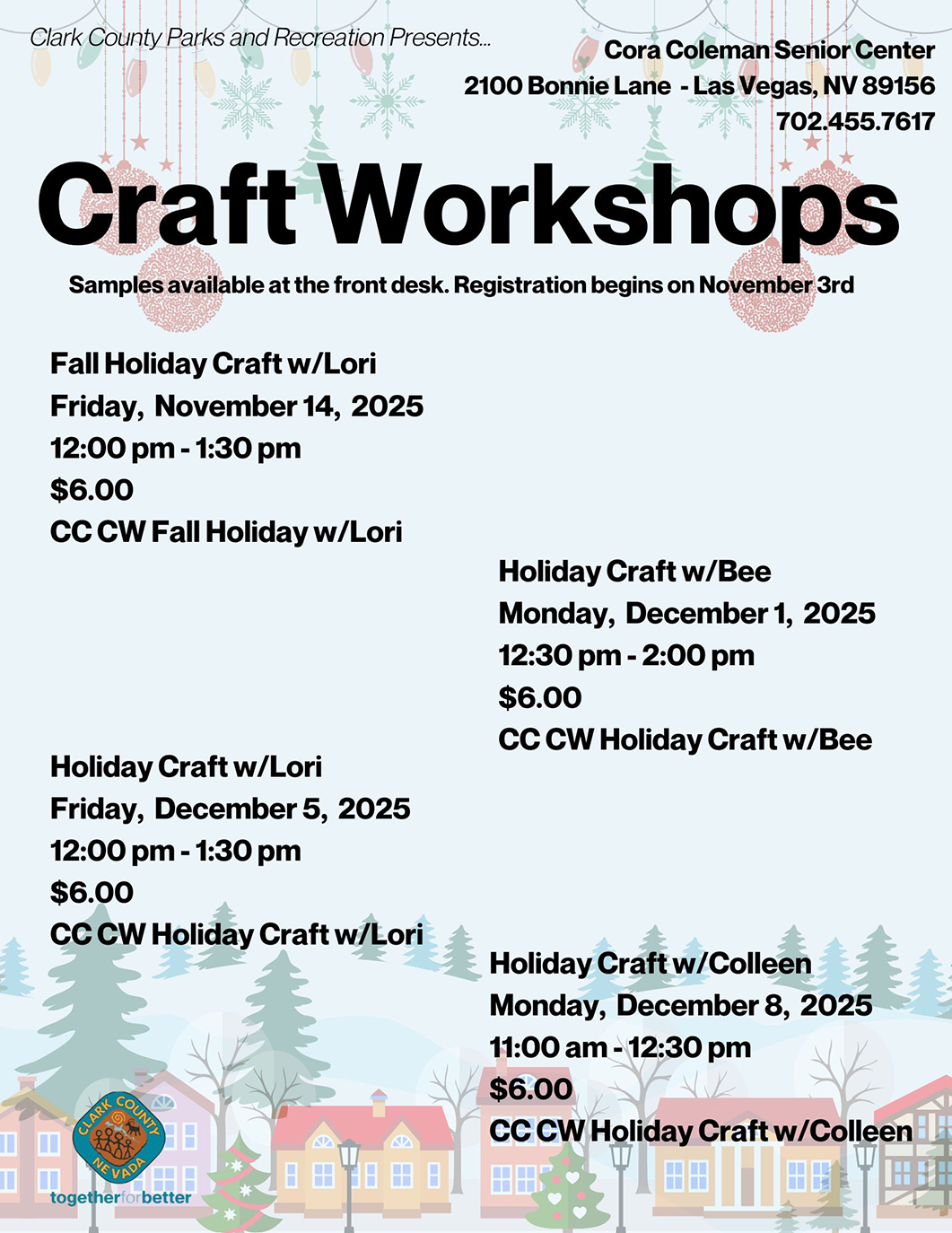 (702) 455-7617, coracolemanseniorcenter@clarkcountynv.gov