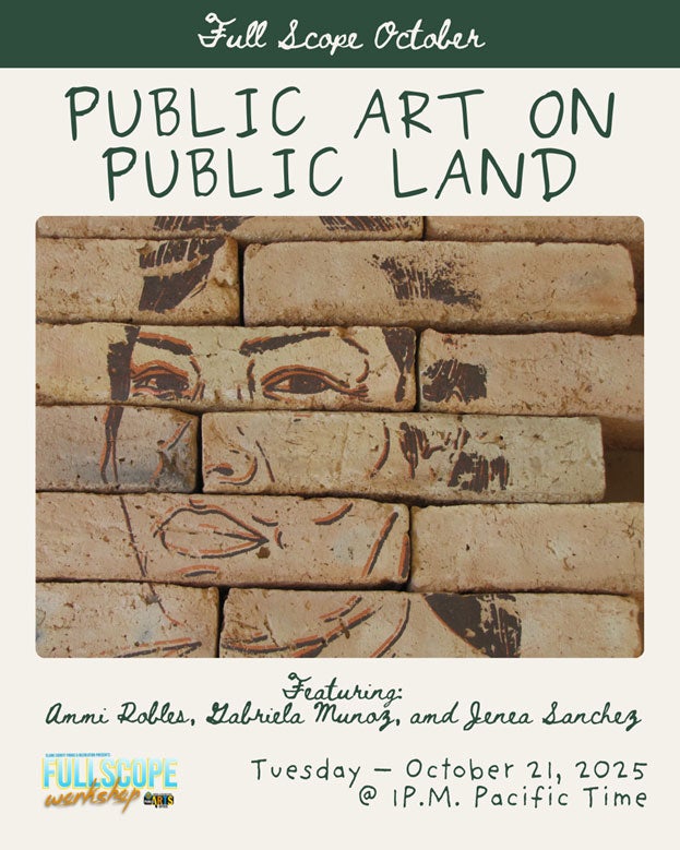 Full Scope Workshop for October invited artists Ammi Robles, Jenea Sanchez, and Gabriela Munoz. They led a conversation about their collaborative projects through the Fronterizx Collective founded by Jenea and Gabriela. They shared their experiences on their community engagement projects and how it has impacted their community.