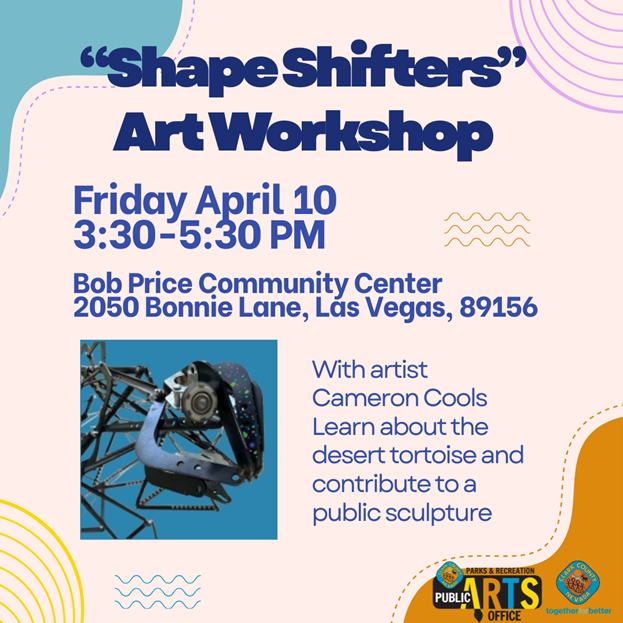 Join us for a fun, hands-on art workshop where creativity meets collaboration! Young artists will transform recycled garage door parts into a playful desert tortoise sculpture inspired by our local environment. Working in small groups, youth will explore color, shape, and simple geometry (triangles) while building individual sections that come together as one final sculpture. This creative experience celebrates our desert home while highlighting the importance of recycling, teamwork, and caring for nature.