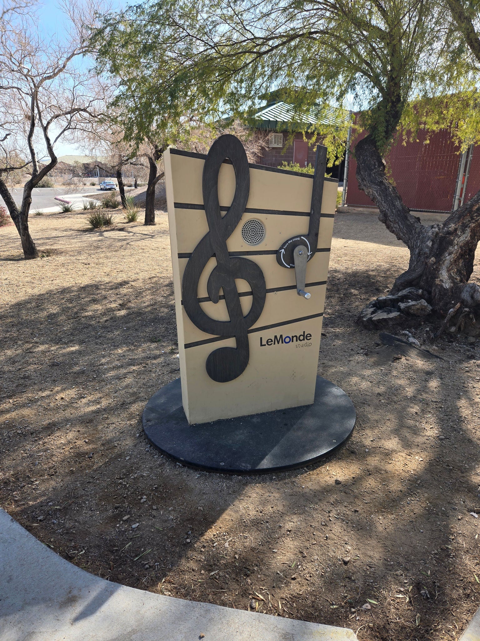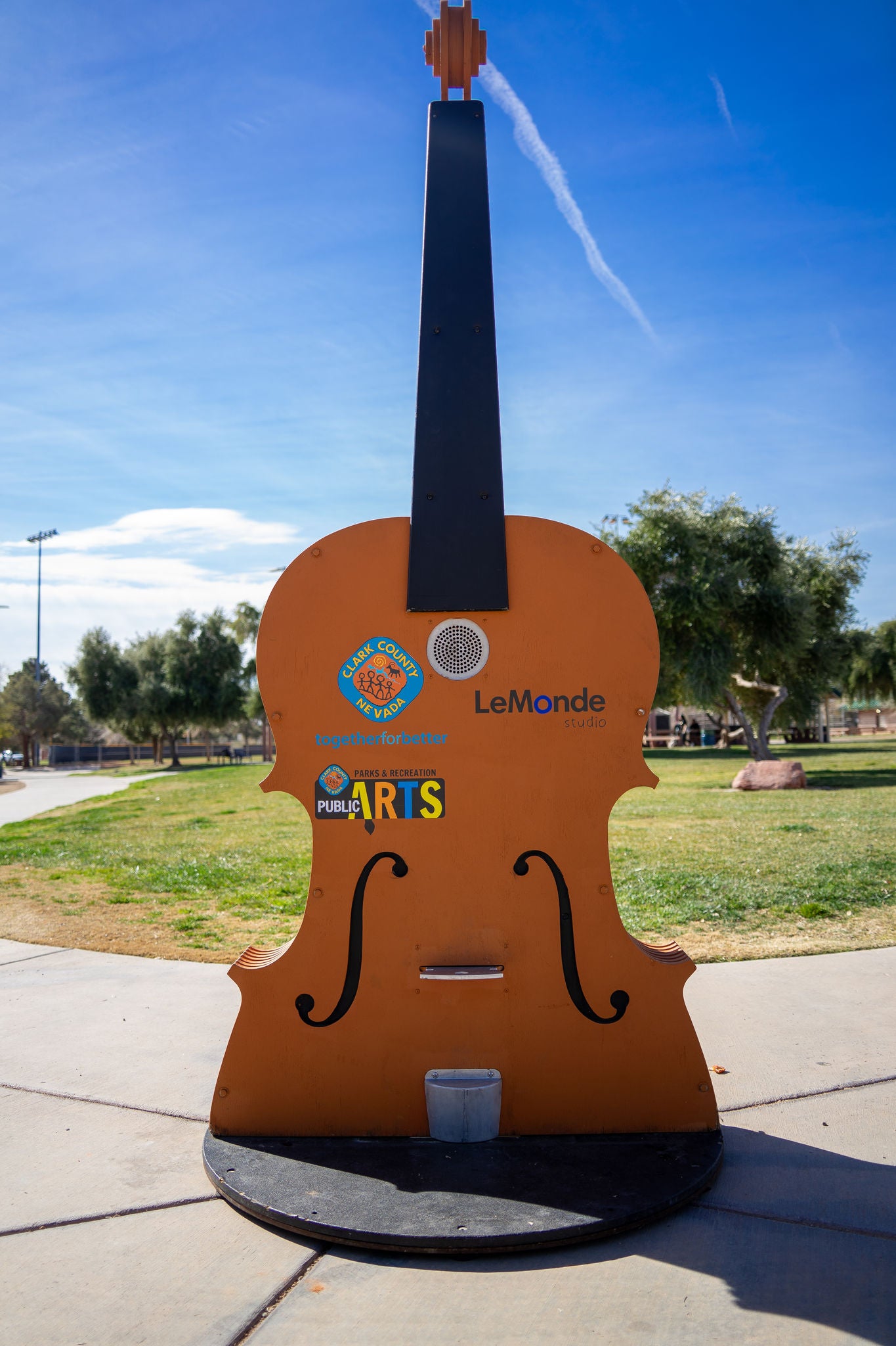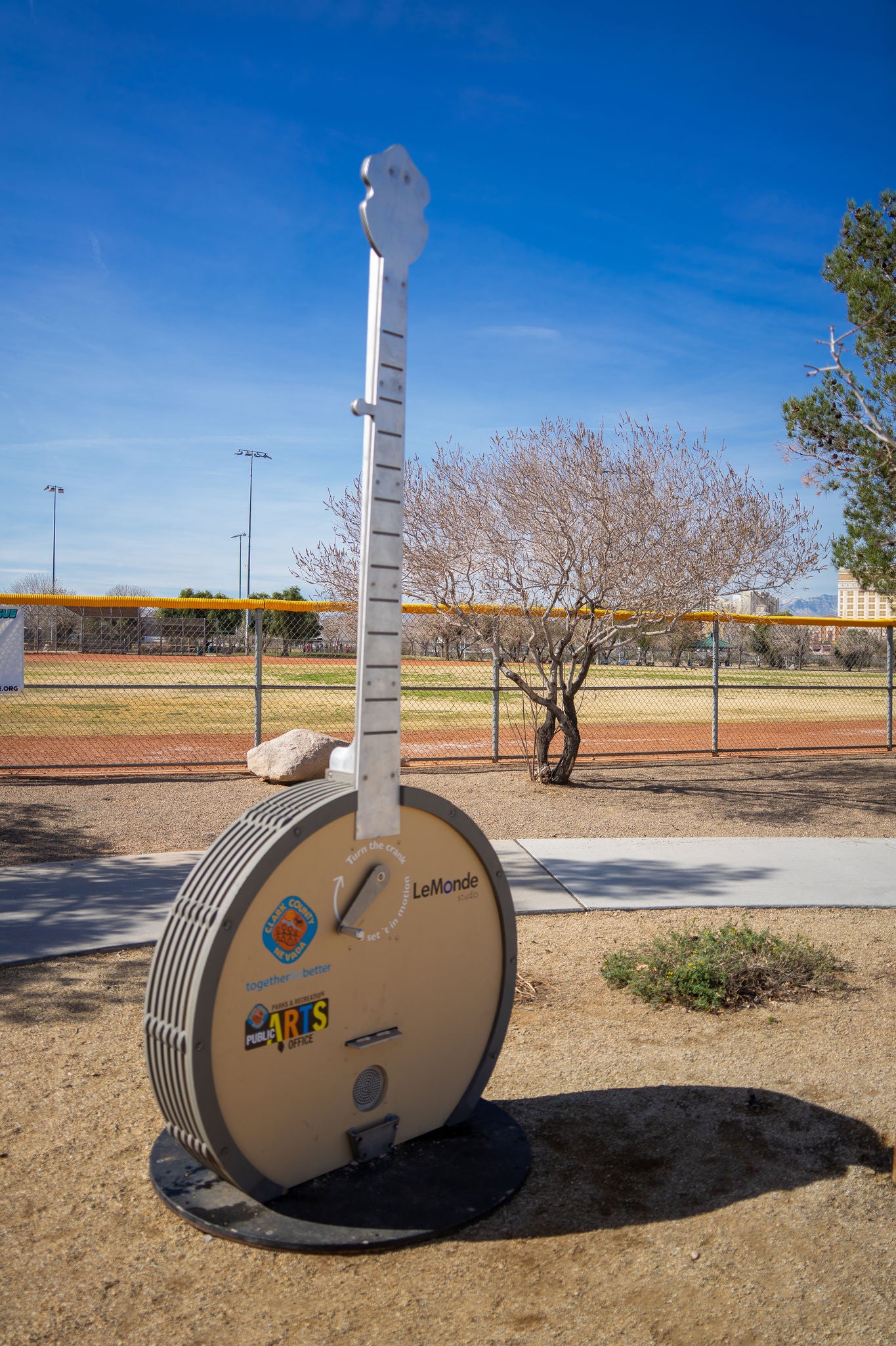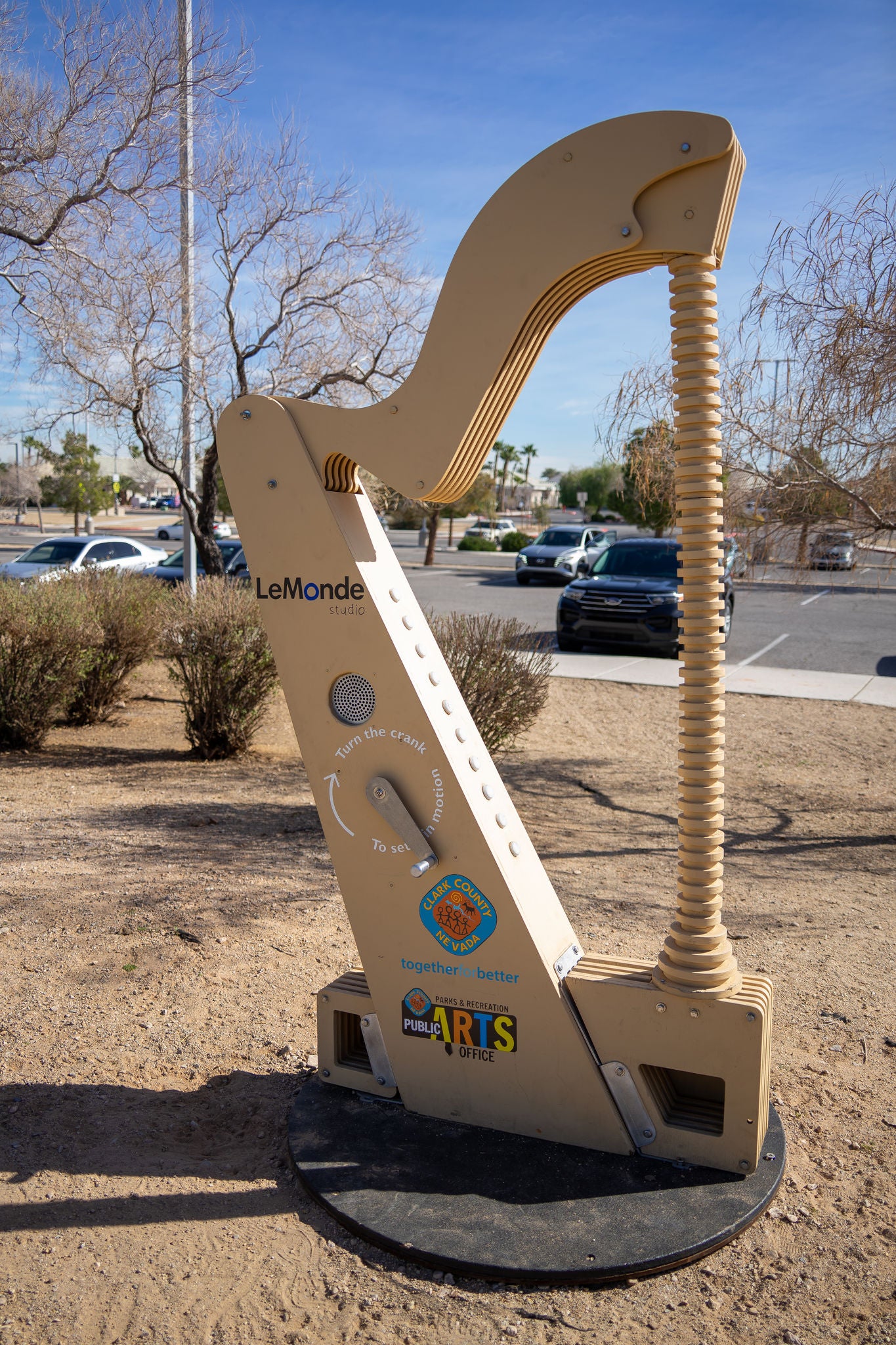 Something unique is making music at Silverado Ranch Park! Clark County Public Arts invites you to experience Harmonies, a musical public art installation by LeMonde Studio. This playful activation features four giant musical instruments: a harp, a banjo, a violin, and a treble key box. These instruments come alive with nothing more than a turn of a crank and a little human power. No plugs, no switches, just you. Powered entirely by movement, Harmonies transform simple gestures into sound, filling the park with melodies while celebrating eco-friendly creativity. It's art you don't just see- it's art you play, feel, and hear. Harmonies will be on view at Silverado Ranch Park, 9855 Gilespie St, Las Vegas, NV 89183, from February 15 through April 1, 2026. Come explore, experiment, and make a little music of your own! This is a temporary experience you won't want to miss.