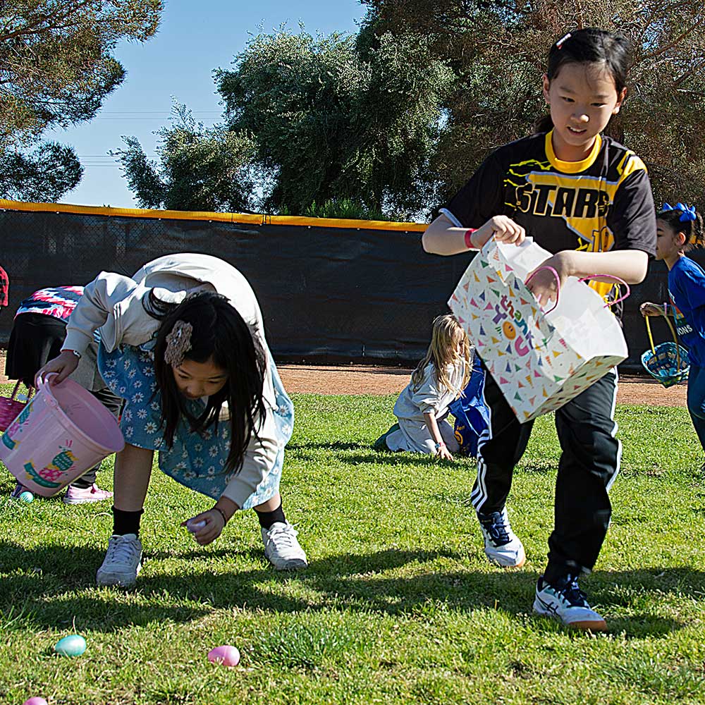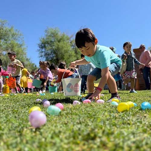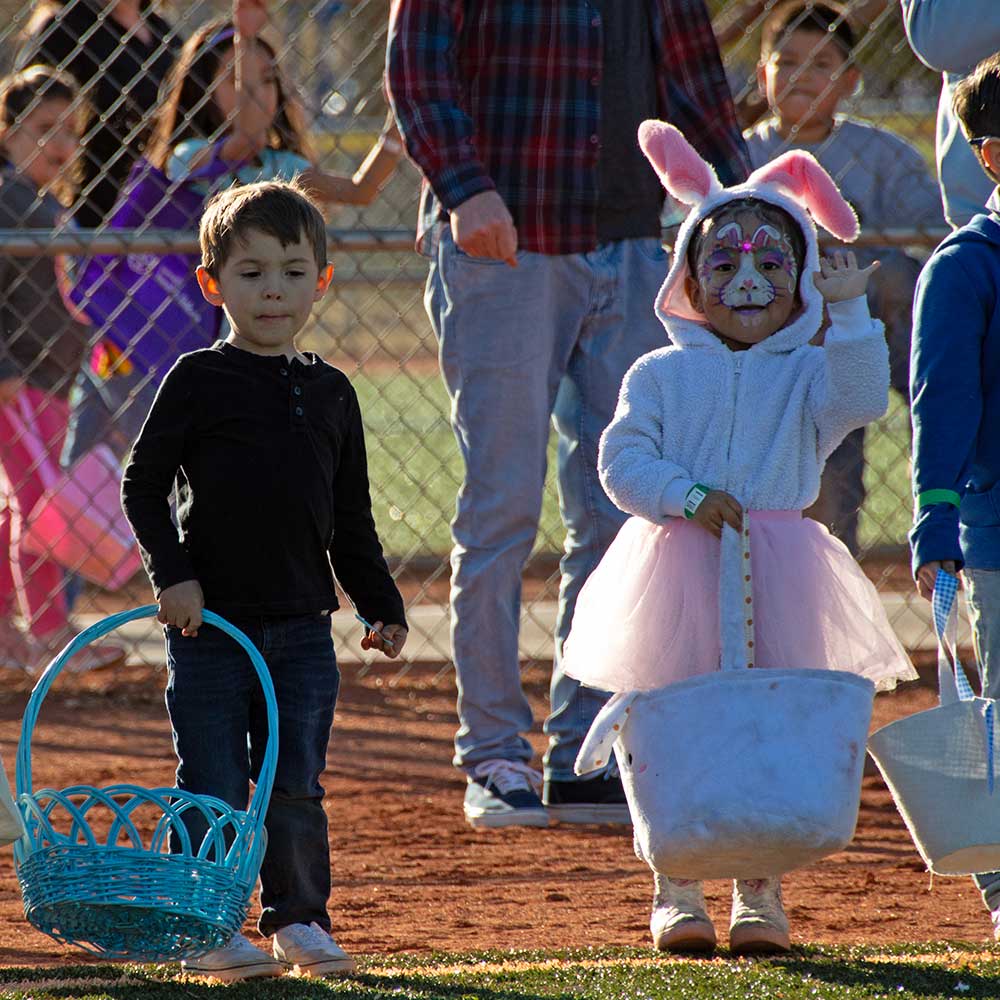 Free family event at Silverado Ranch park featuring egg hunts, games, bunny visit, food trucks and more!