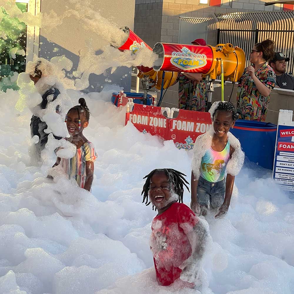 Summer foam fun and music for all ages; under 5 must be with an adult.